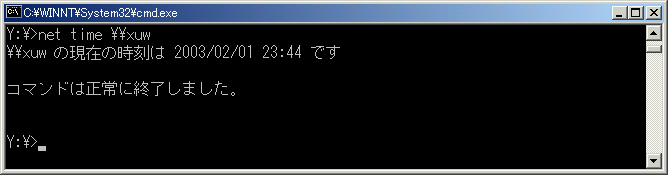 net timeコマンドはネットワーク上のリモートコンピューターの時刻を表示する。