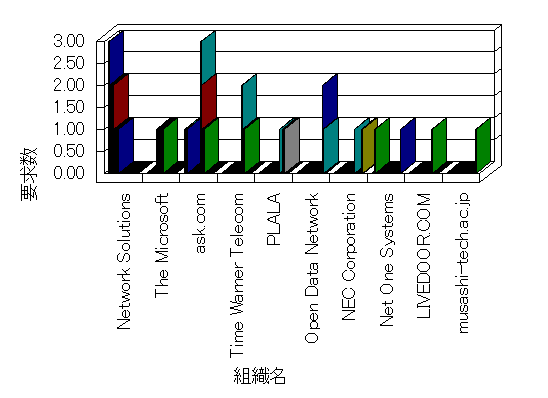 組織ユーザーにインターネット接続を提供する、商用または非営利団体、学術・行政機関などの、インターネット ドメイン で識別される団体や組織です。Microsoft Site Server Analysis は同じ組織に登録されたすべてのドメインを 1 つの組織としてグループ化します。ドメインがデータベースで使用できない場合は、1 つのインターネット ドメインが 1 つの組織を識別するのに使用されます。