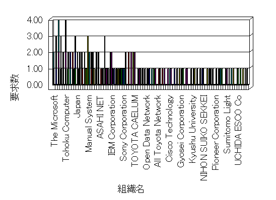 組織ユーザーにインターネット接続を提供する、商用または非営利団体、学術・行政機関などの、インターネット ドメイン で識別される団体や組織です。Microsoft Site Server Analysis は同じ組織に登録されたすべてのドメインを 1 つの組織としてグループ化します。ドメインがデータベースで使用できない場合は、1 つのインターネット ドメインが 1 つの組織を識別するのに使用されます。