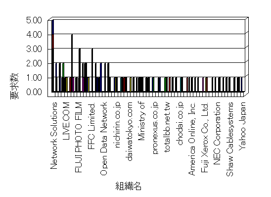 組織ユーザーにインターネット接続を提供する、商用または非営利団体、学術・行政機関などの、インターネット ドメイン で識別される団体や組織です。Microsoft Site Server Analysis は同じ組織に登録されたすべてのドメインを 1 つの組織としてグループ化します。ドメインがデータベースで使用できない場合は、1 つのインターネット ドメインが 1 つの組織を識別するのに使用されます。