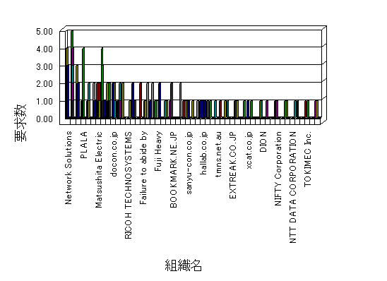 組織ユーザーにインターネット接続を提供する、商用または非営利団体、学術・行政機関などの、インターネット ドメイン で識別される団体や組織です。Microsoft Site Server Analysis は同じ組織に登録されたすべてのドメインを 1 つの組織としてグループ化します。ドメインがデータベースで使用できない場合は、1 つのインターネット ドメインが 1 つの組織を識別するのに使用されます。