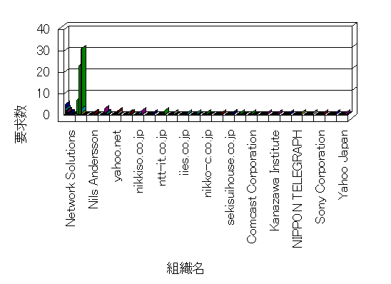 組織ユーザーにインターネット接続を提供する、商用または非営利団体、学術・行政機関などの、インターネット ドメイン で識別される団体や組織です。Microsoft Site Server Analysis は同じ組織に登録されたすべてのドメインを 1 つの組織としてグループ化します。ドメインがデータベースで使用できない場合は、1 つのインターネット ドメインが 1 つの組織を識別するのに使用されます。