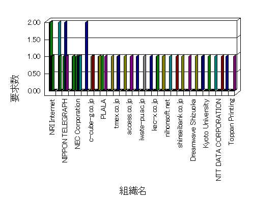 組織ユーザーにインターネット接続を提供する、商用または非営利団体、学術・行政機関などの、インターネット ドメイン で識別される団体や組織です。Microsoft Site Server Analysis は同じ組織に登録されたすべてのドメインを 1 つの組織としてグループ化します。ドメインがデータベースで使用できない場合は、1 つのインターネット ドメインが 1 つの組織を識別するのに使用されます。