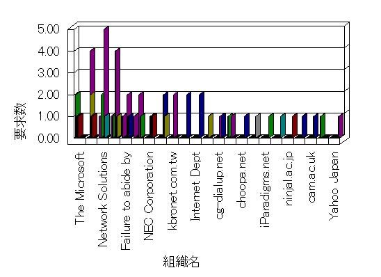 組織ユーザーにインターネット接続を提供する、商用または非営利団体、学術・行政機関などの、インターネット ドメイン で識別される団体や組織です。Microsoft Site Server Analysis は同じ組織に登録されたすべてのドメインを 1 つの組織としてグループ化します。ドメインがデータベースで使用できない場合は、1 つのインターネット ドメインが 1 つの組織を識別するのに使用されます。