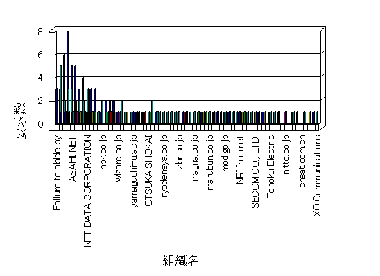 組織ユーザーにインターネット接続を提供する、商用または非営利団体、学術・行政機関などの、インターネット ドメイン で識別される団体や組織です。Microsoft Site Server Analysis は同じ組織に登録されたすべてのドメインを 1 つの組織としてグループ化します。ドメインがデータベースで使用できない場合は、1 つのインターネット ドメインが 1 つの組織を識別するのに使用されます。