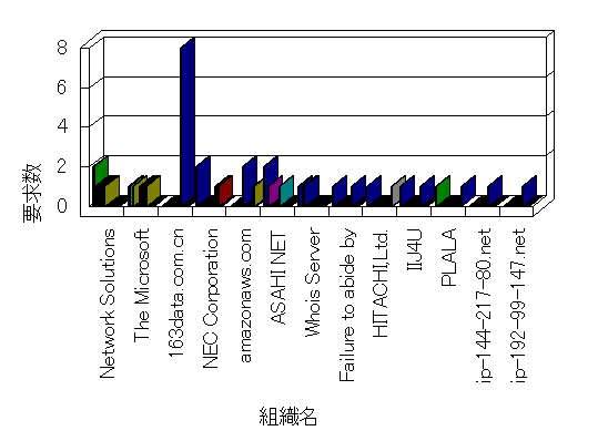 組織ユーザーにインターネット接続を提供する、商用または非営利団体、学術・行政機関などの、インターネット ドメイン で識別される団体や組織です。Microsoft Site Server Analysis は同じ組織に登録されたすべてのドメインを 1 つの組織としてグループ化します。ドメインがデータベースで使用できない場合は、1 つのインターネット ドメインが 1 つの組織を識別するのに使用されます。